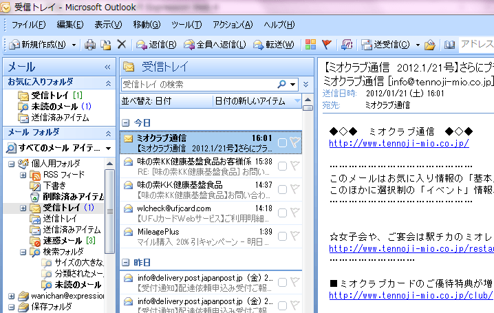 今まで、新着メールが来た時に「受信トレイ」フォルダーの右側に未読アイテムの数が表示されていたのに、ある時からアイテムの合計数が表示されてしまった場合は、設定をいつの間にか「アイテムの合計数を表示する」に変更してしまった可能性が高いです。