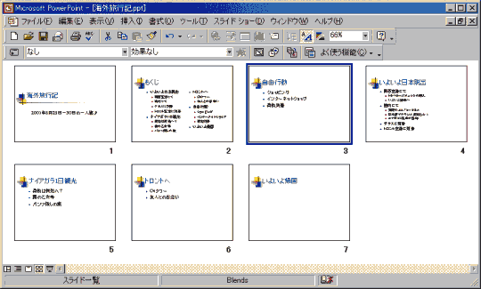 すると、以下のようにスライド一覧表示モードに切り替わります。
