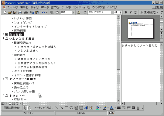 それでは、アウトラインペインで3番目に移動したスライドを6番目に戻しましょう。