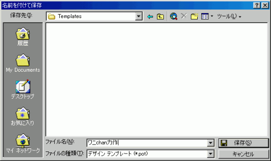 ファイルの種類を「デザインテンプレート」にして、ファイル名を適当につけて[保存]ボタンをクリックしてくださいね。