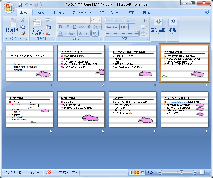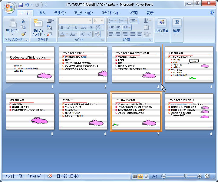 - ドロップすることで、スライドが並べ替えられました。
