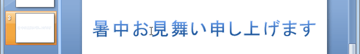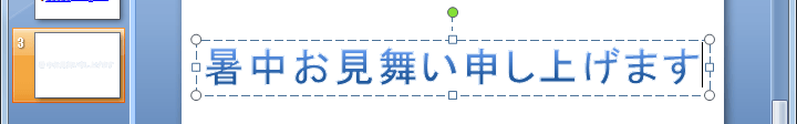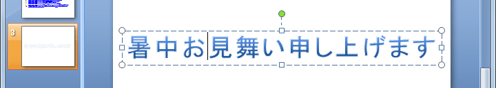 - スライドの中央にワードアートが挿入され、「ここに文字を入力」に文字を入力します。