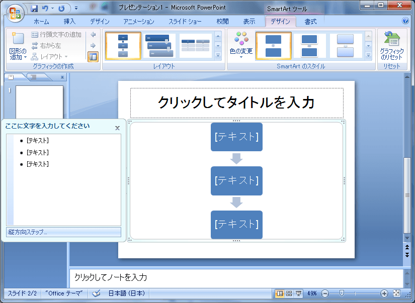 PowerPoint 2007で[デザイン]タブの[テキスト