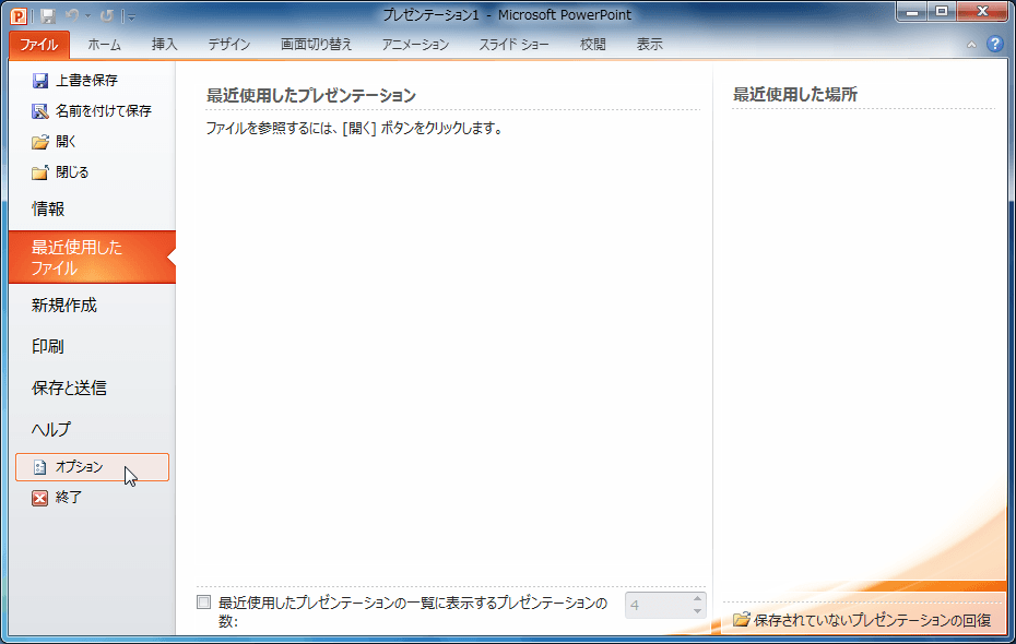 - [ファイル]タブを開き、[オプション]をクリックします。