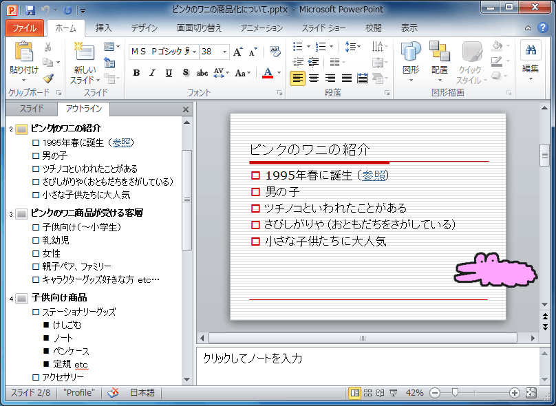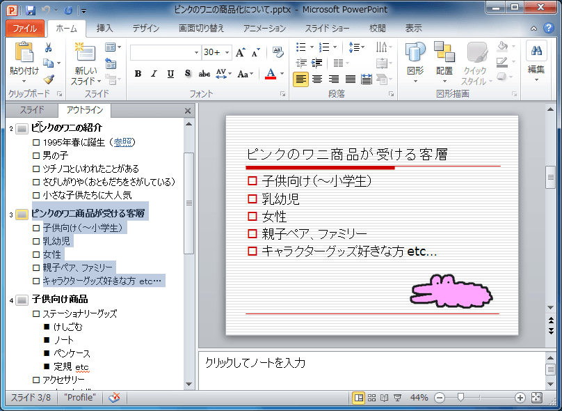 - そのアウトラインのスライドが表示されました。