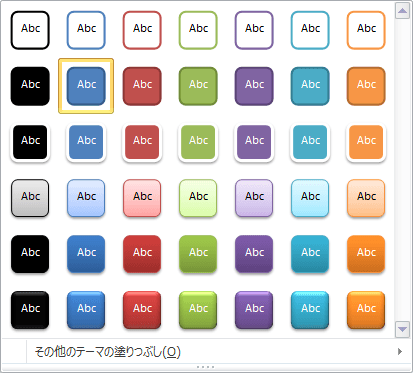 図形を描画すると、既定では現在のテーマ(Office テーマ)の視覚的スタイル一覧の2行目の2列目のスタイルが適用されます。