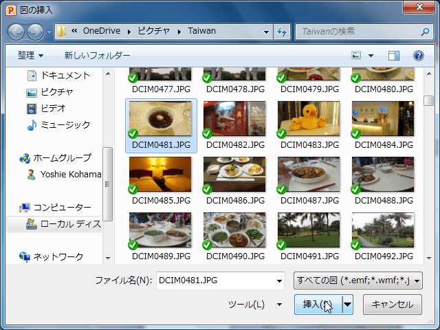 - 変更したい図を選択して[挿入]ボタンをクリックします。