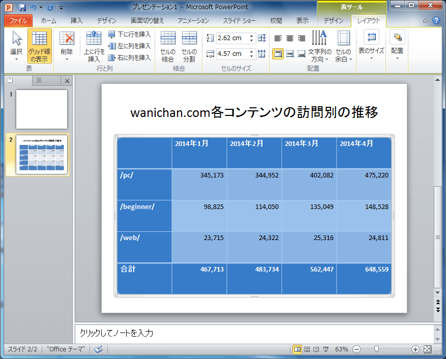 表を作成する、変更する