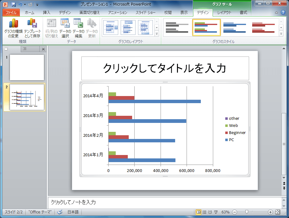 Microsoft PowerPoint 内のグラフにデータを入力する