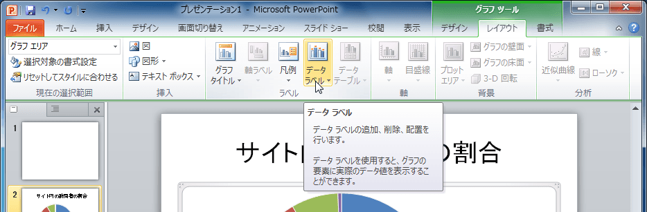 - [データラベル]を選択します。