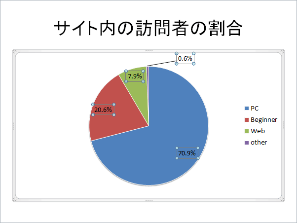- 値の小さいデータラベルをドラッグして移動すると引き出し線が表示されました。