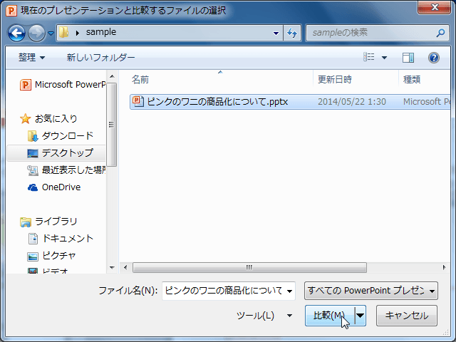 - 対象となるプレゼンテーションファイルを選択して[比較]ボタンをクリックします。