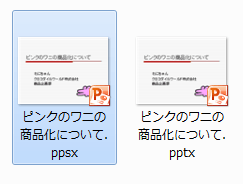 通常、ファイルをダブルクリックすると、PowerPointが起動してそのファイルが開くようになりますが、スライドショーとして保存することによって、ダブルクリックすることでスライドショーが実行されるようになります。実質、拡張子が「*.pptx」から「*.ppsx」に変わっただけで、中身は変わりません。