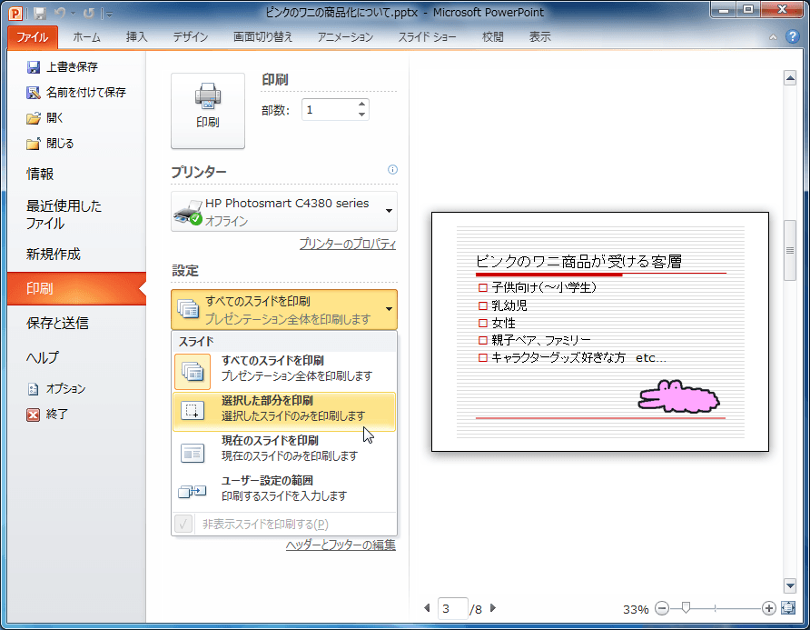 選択したスライドを印刷する