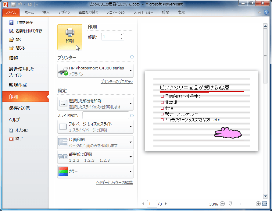 プレゼンテーションを印刷する