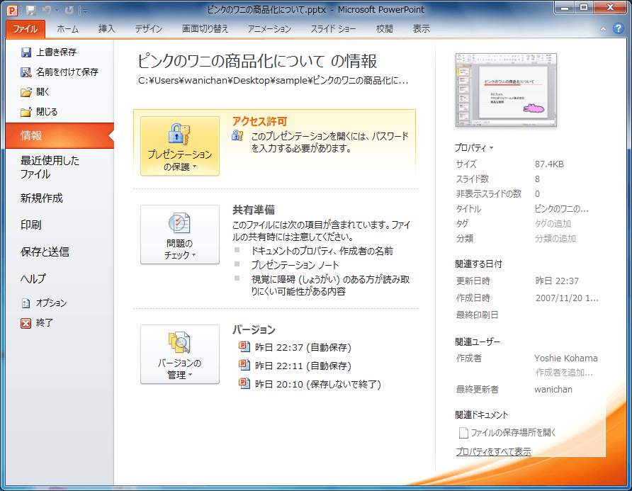 プレゼンテーションを保護する