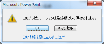 - ドキュメントが最終版として設定されたという情報メッセージが表示されたら、内容を確認して[OK]ボタンをクリックします。