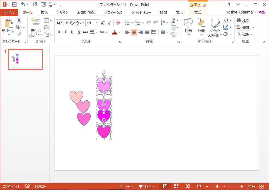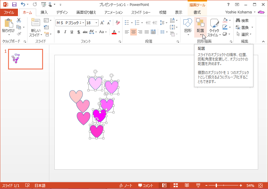 図形またはスライドを並べ替える、グループ化する