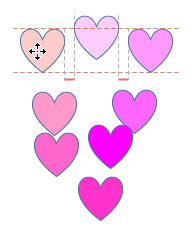 - そのままドラッグすると、他のオブジェクトの左端、中央、右端のラインに達するとガイドが表示されます。その位置でドロップします。