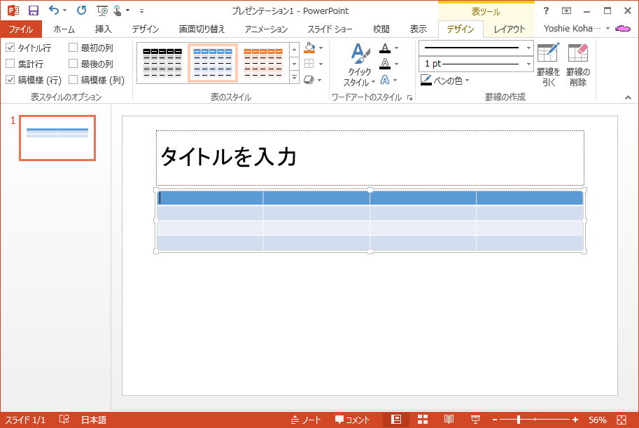 表のスタイルを適用するには