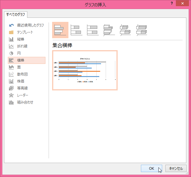 横棒グラフを挿入する