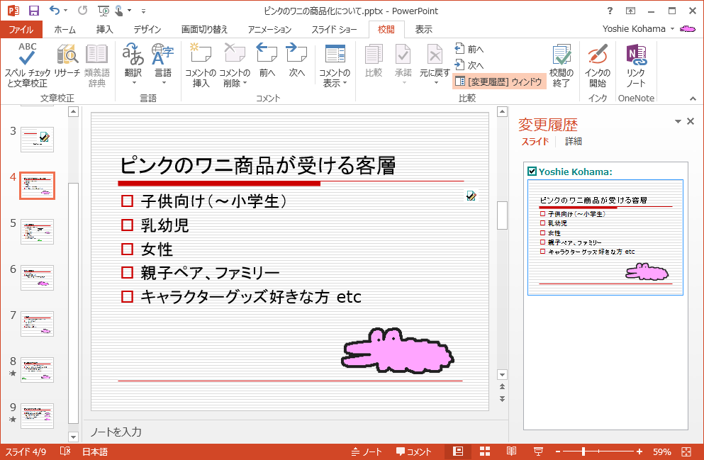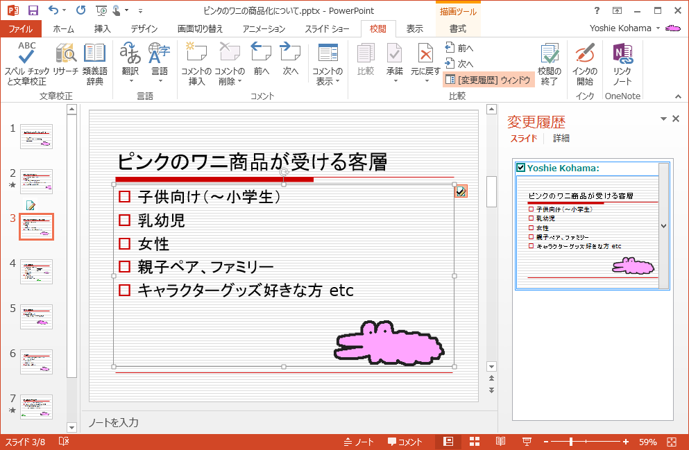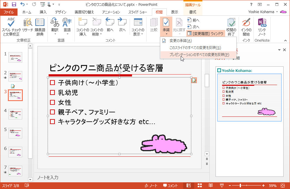 - プレゼンテーションのすべての変更が反映されました。