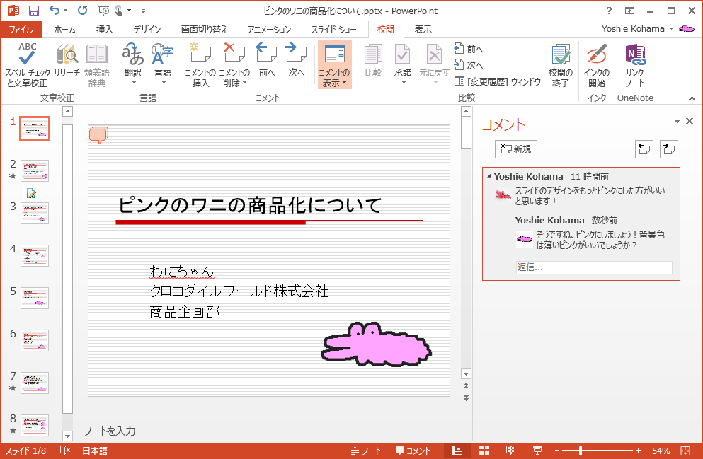 - コメントウィンドウに注釈つきで表示されました。次のコメントを確認するには、そのコメントウィンドウの