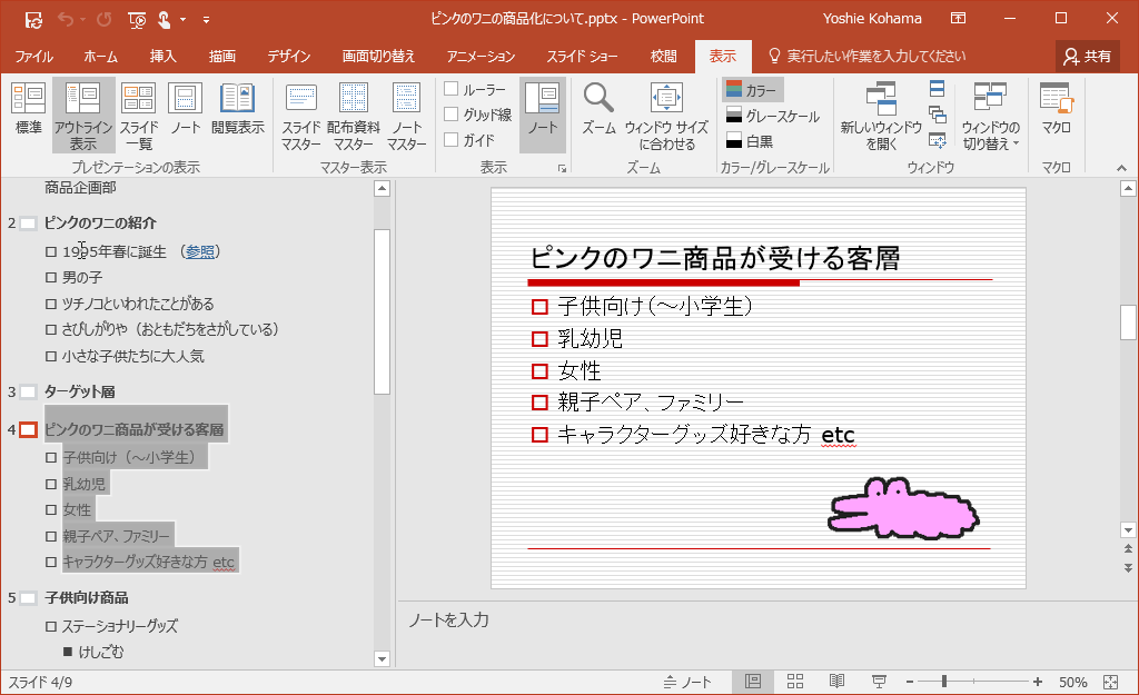 アウトライン表示でプレゼンテーション内を移動する