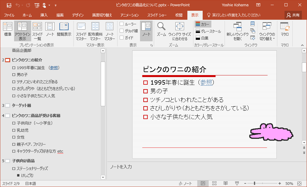 - そのアウトラインのスライドが表示されました。