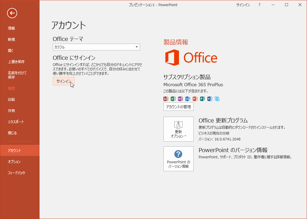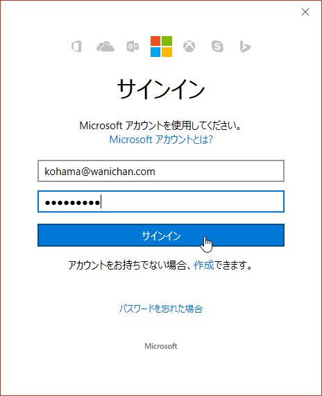 アカウントにサインイン