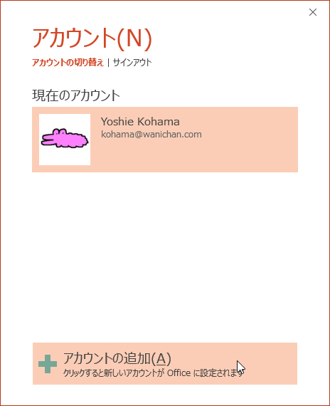- [アカウントの切り替え]をクリックします。