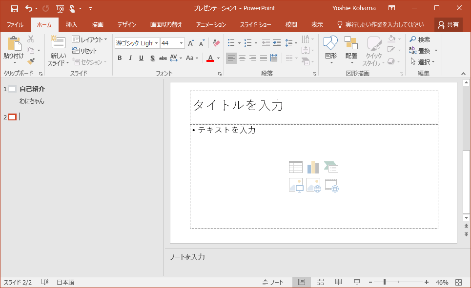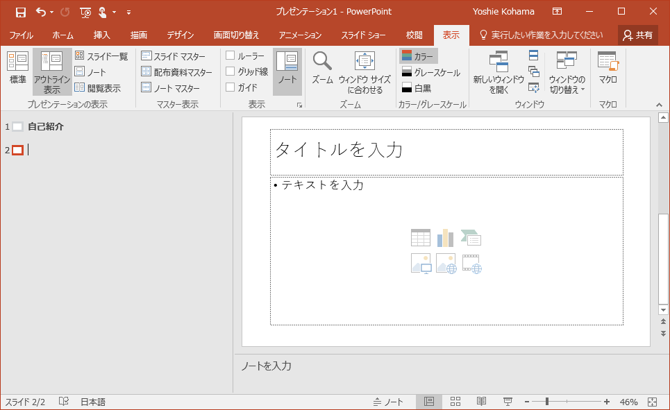 2枚目のスライドを入力する