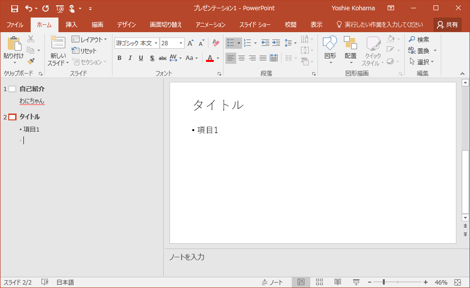 - 2枚目のスライドタイトルが入力できる状態になりました。
