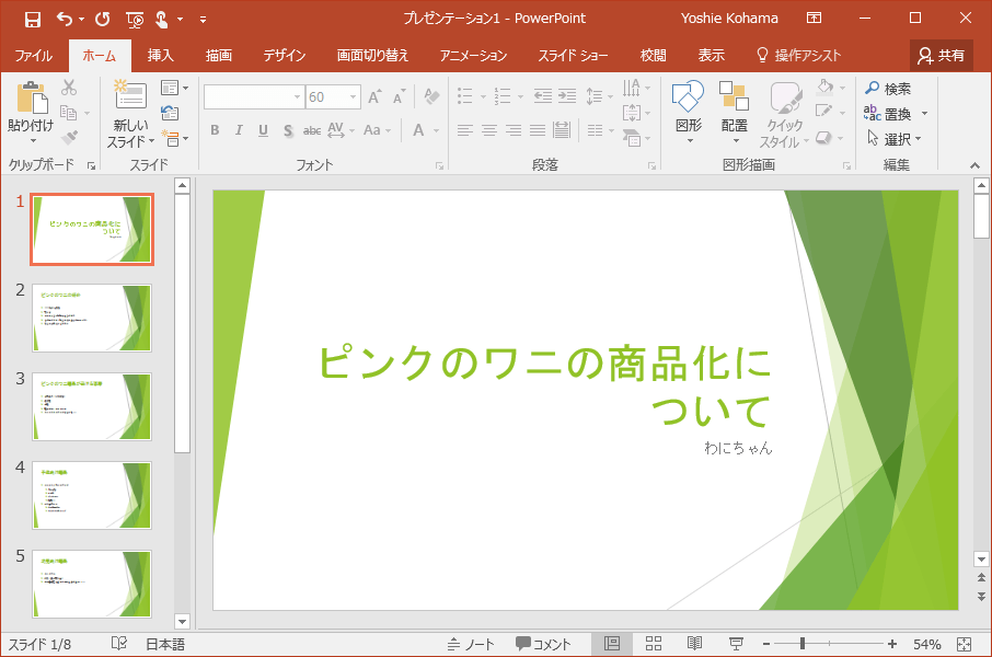 - マスター表示が閉じられて、スライドショーの編集に戻りました。