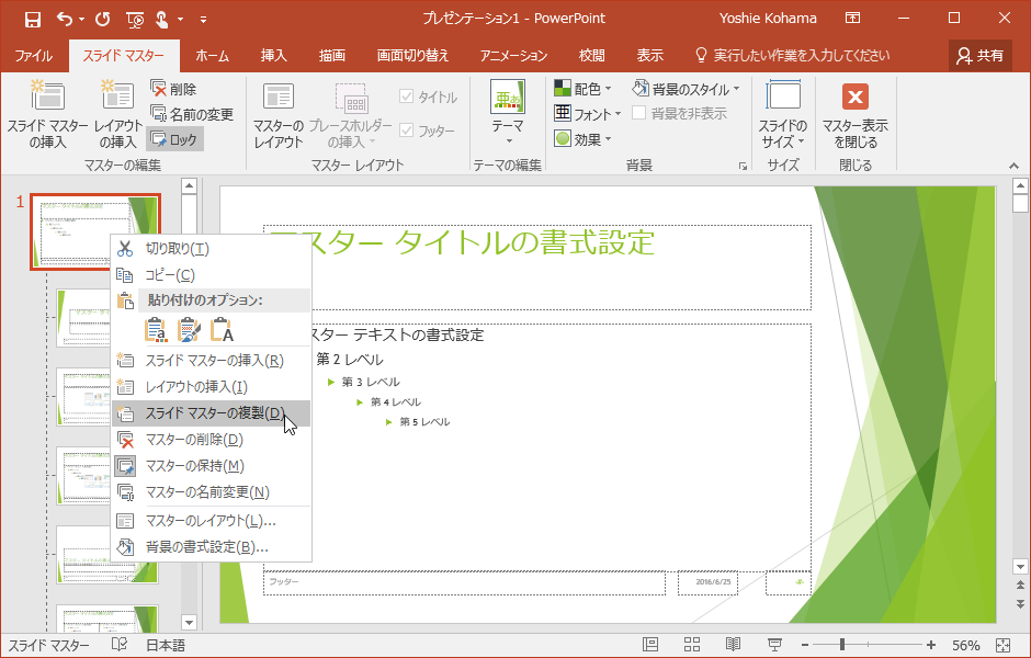スライドマスターの複製