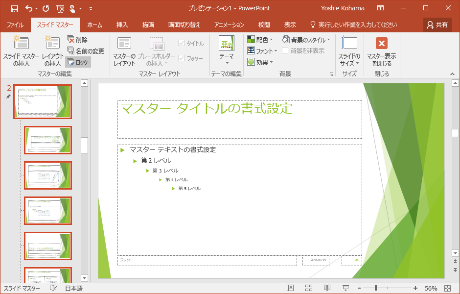 - スライドマスターが複製されて、そのスライドマスターがロックされました。