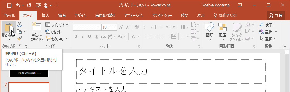 - PowerPointの貼り付けたいスライドを表示して、貼り付けます。
