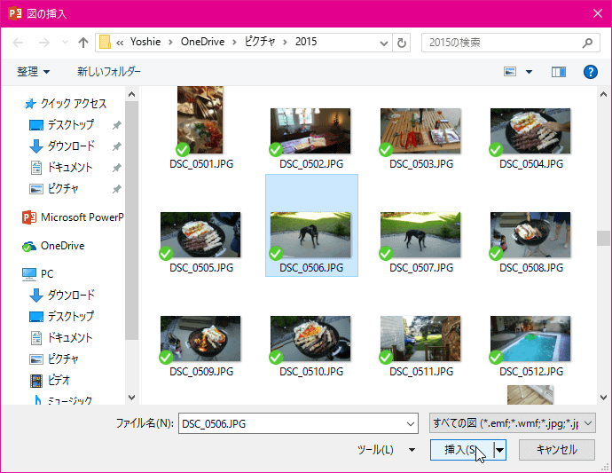 - 挿入したい画像を選択して[挿入]ボタンをクリックします。