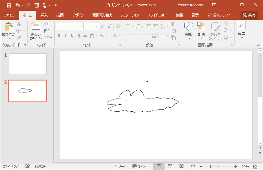ちなみに、スライドショー実行中に利用できるインク注釈の場合、スライドショー終了後にそのインク注釈を保持するか否かのメッセージが表示されます。スライドショーを開始することなく、通常の編集画面でスライドに直接インク注釈を入れることができるのがこの機能となります。