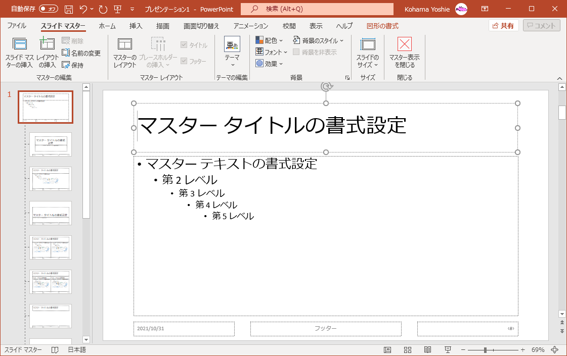 スライド、配布資料、ノートのマスターを変更する