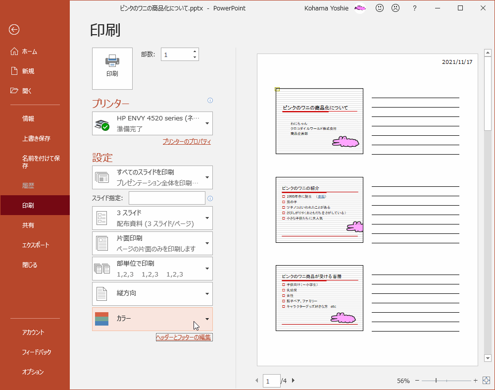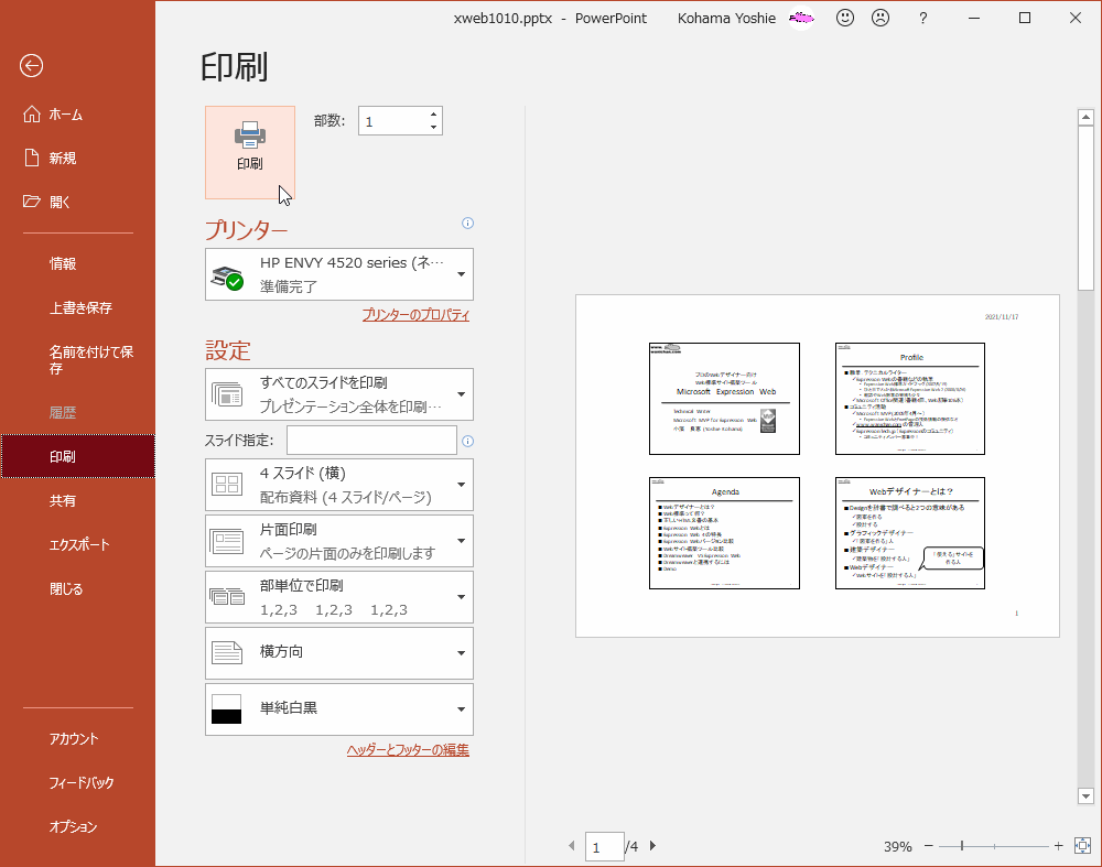 プレゼンテーションの印刷設定を行う