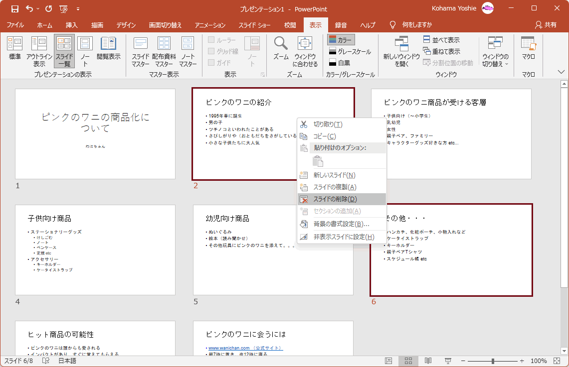- 選択したスライドが削除されました。