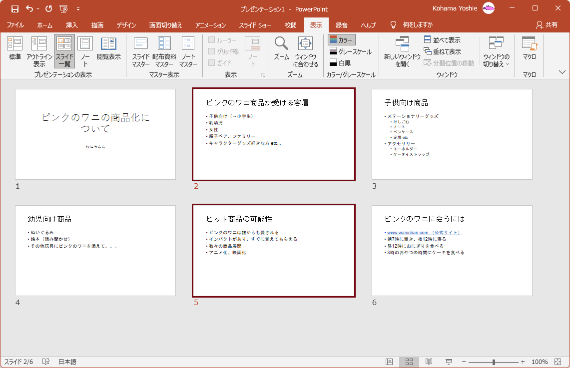 - 複数のスライドがまとめて削除できました。