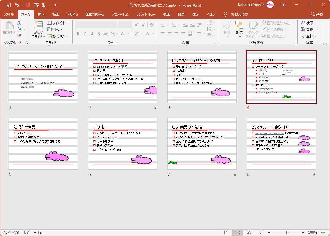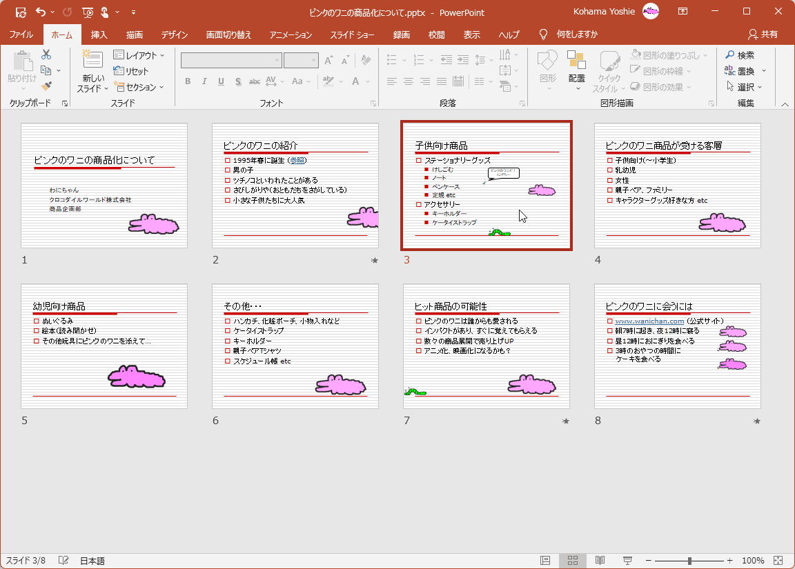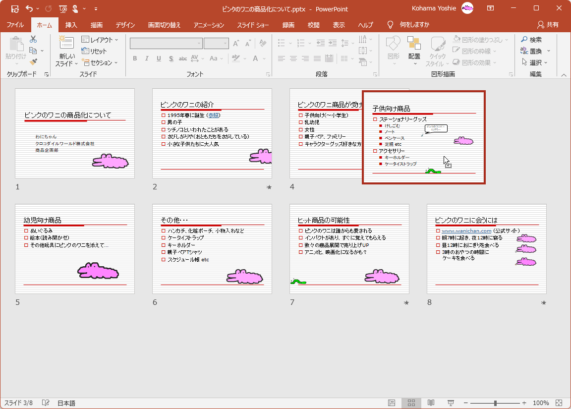 スライド一覧表示でスライドの順序を変更する