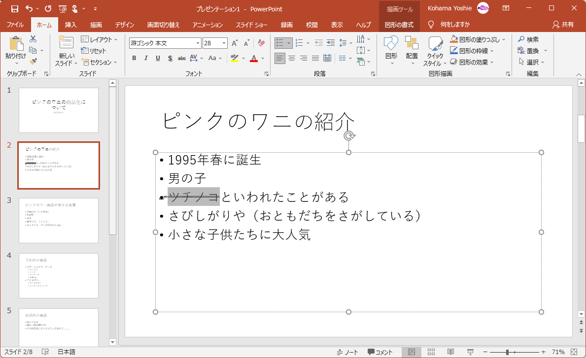 対象となる文字列を選択して[ホーム]タブの[フォント]グループの