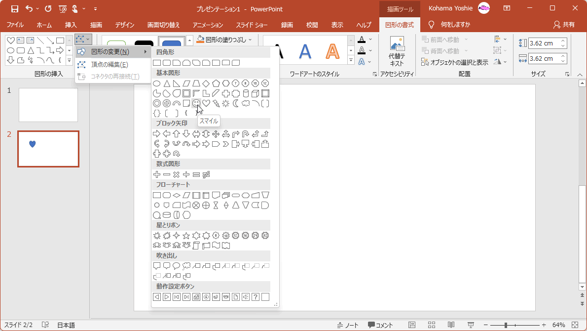 - [図形の変更]の一覧から変更したい図形を選択します。