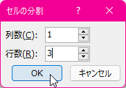 - セルの分割方法を指定して[OK]ボタンをクリックします。