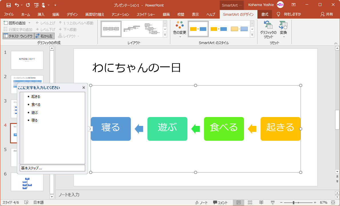 - SmartArtグラフィックのレイアウトの左右が入れ替わりました。
