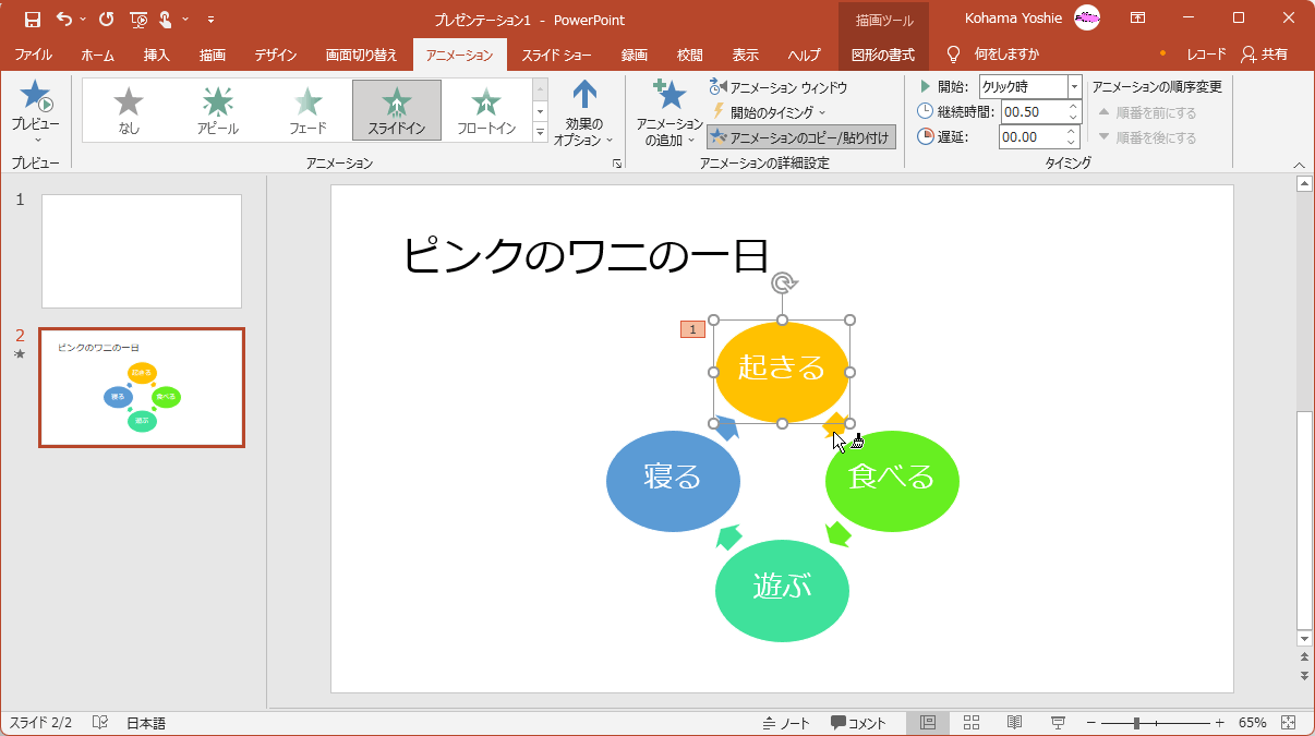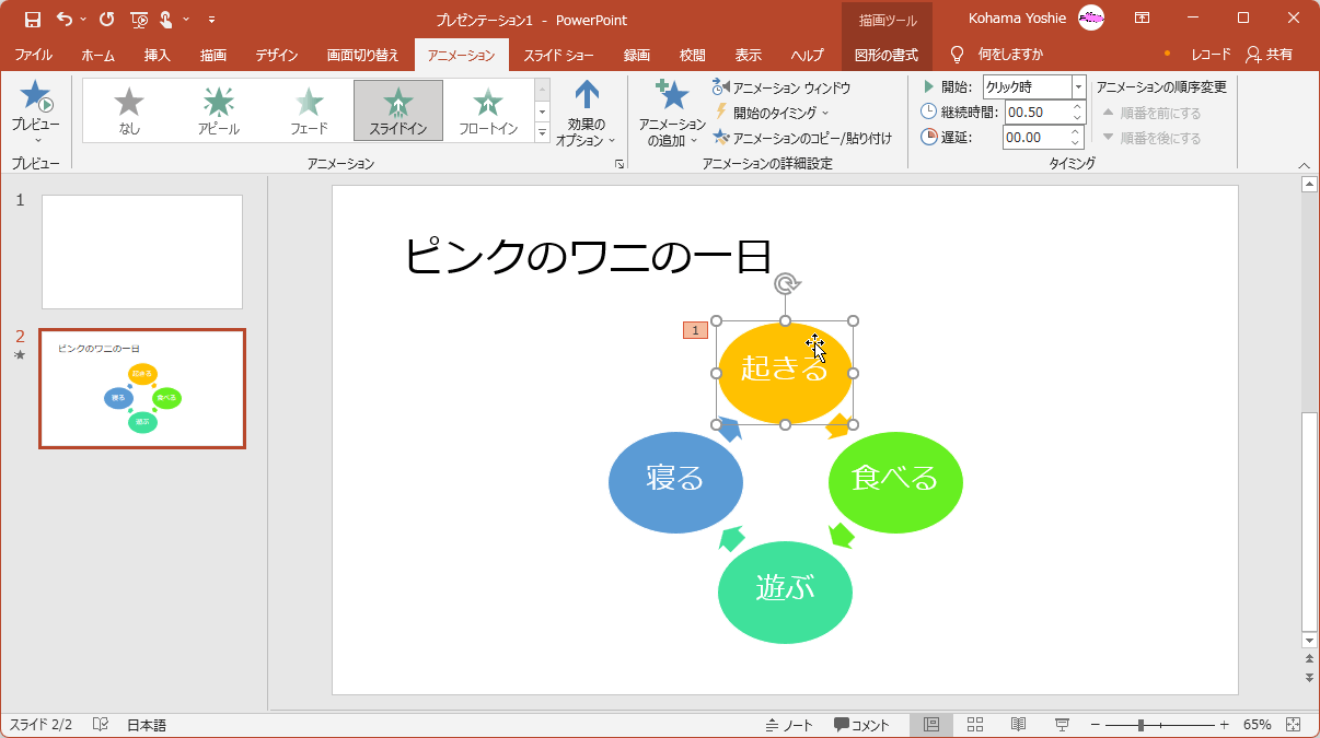 - アニメーションが適用された図形を選択します。