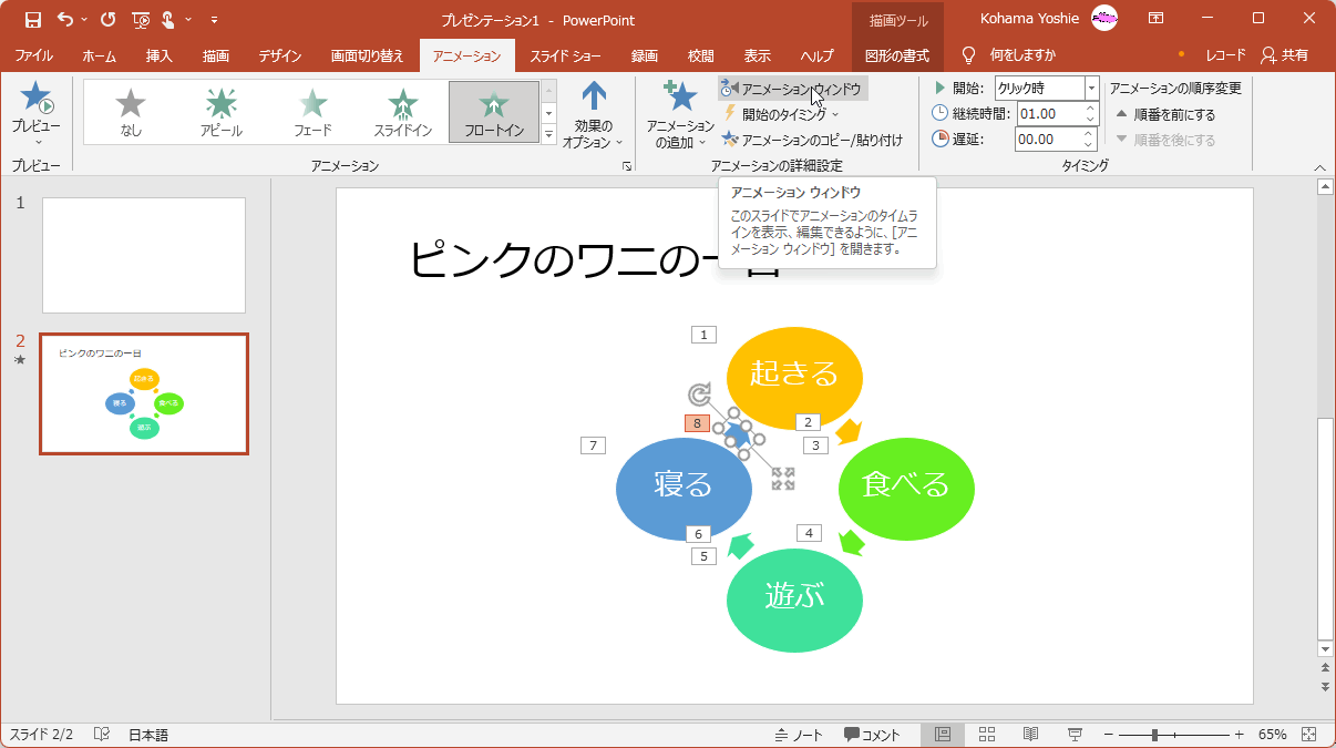 アニメーションウィンドウを使用する